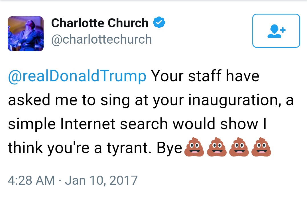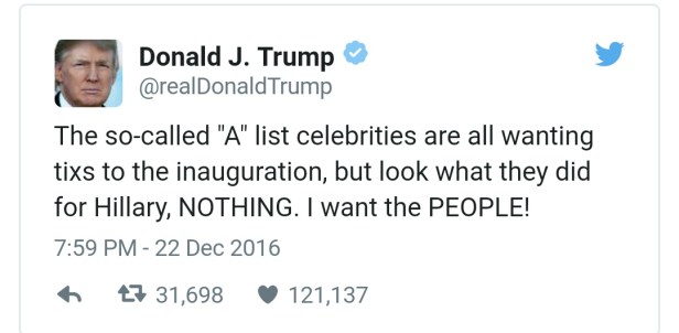 Here is also a list of people who declined to perform for the Donald Trump Inauguration.