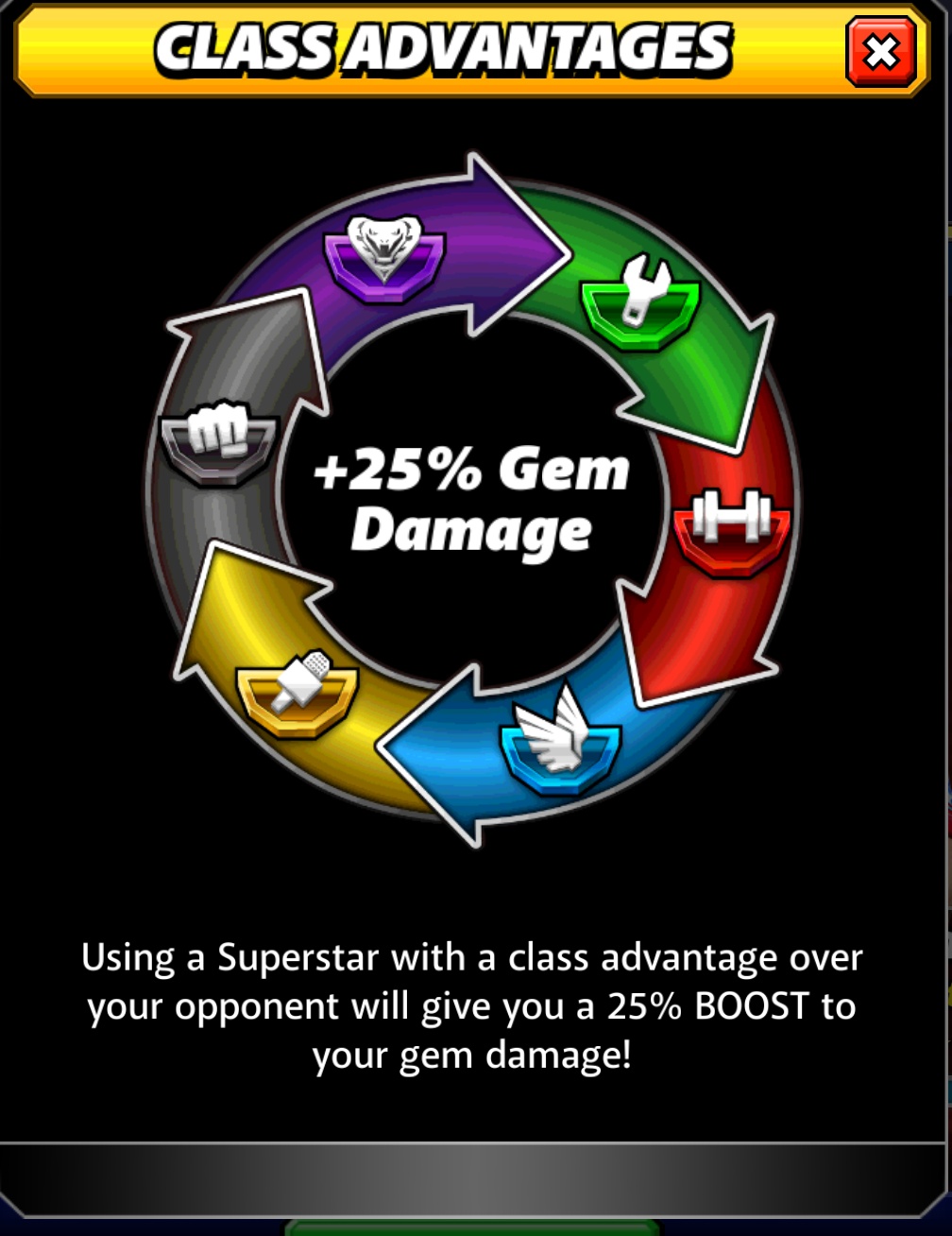 Wrestlers are organized in categories like high-flyer, technician, and trickster. Like rock-paper-scissors, one class of wrestlers have an advantage over another.